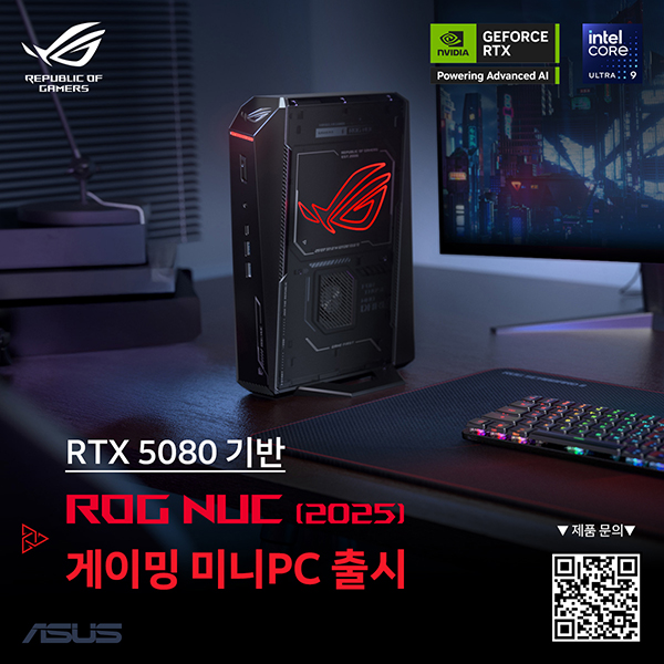 에이수스 코리아(컴퍼넌트 커머셜 사업부 지사장 강인석, 이하 에이수스)는 Intel Core Ultra 9 프로세서(시리즈 2)와 최신 NVIDIA GeForce RTX 5080 GPU를 탑재한 고성능 게이밍 미니 PC, ROG NUC 2025를 출시했다.