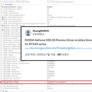엔비디아 인스펙터를 사용해야 스무스 모션이 활성화 되는 것도 정식 버전이 배포되면