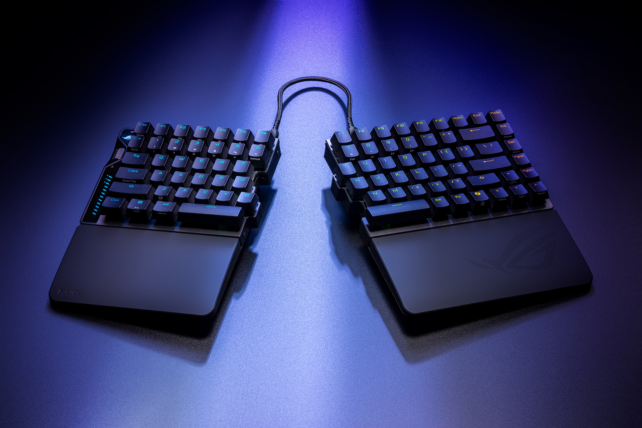 특히 가장 주목을 받는 제품은 ROG FALCATA이다. 75% 레이아웃의 스플릿 설계를 채택한 FALCATA는 키보드 피트 및 고정식 팜레스트와 조합하여 인체공학적으로 편안한 자세를 손쉽게 연출할 수 있는 것은 물론, 게이밍 시에는 더욱 넓은 공간을 확보, 마우스를 더 넓게 활용할 수 있다. 또한 ROG HFX V2 마그네틱 스위치를 탑재해 FPS 게이머에게 필수적인 래피드 트리거 기능을 지원하고, 래피드 트리거의 작동 포인트를 0.1mm부터 3.5mm까지 0.01mm 단위로 극히 세밀하게 설정할 수 있다. 이외에도 무선에서 8,000Hz의 폴링레이트로 더욱 부드러운 컨트롤을 실현하는 ROG SpeedNova 8K 무선 기술을 통해 게이머가 요구하는 모든 스펙을 갖췄다.