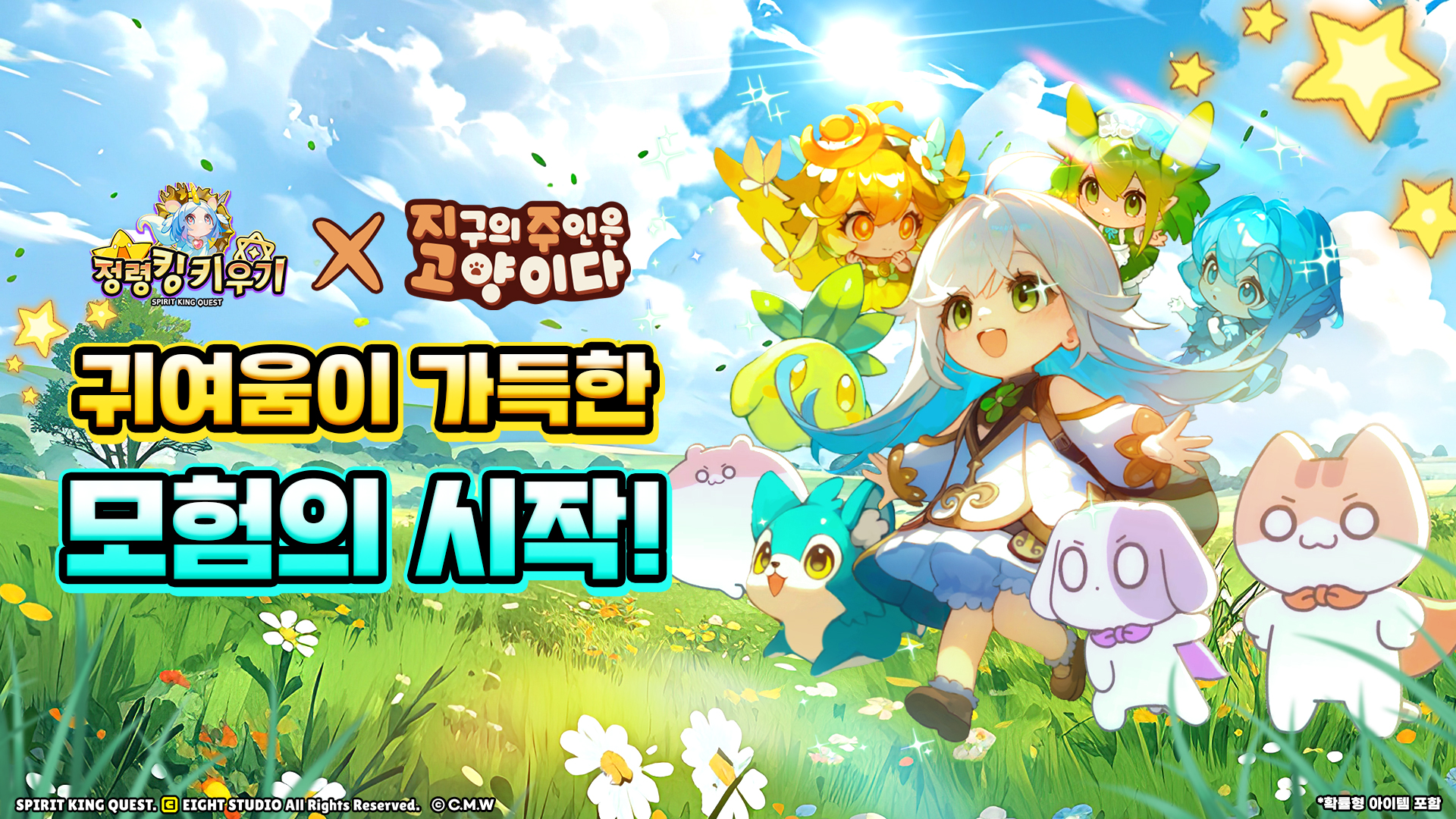 이번 콜라보레이션의 원작인 ‘지구의 주인은 고양이다’는 지구 정복을 꿈꾸는 엉뚱하고 사랑스러운 고양이 ‘치치’와 친구들의 이야기를 다룬 웹툰 원작 애니메이션으로, 이번에 콜라보 업데이트를 통해 원작의 주인공 ‘치치’, ‘모랑’, ‘카식이’가 ‘정령킹 키우기’ 세계 속에서 특별한 모습으로 등장한다.