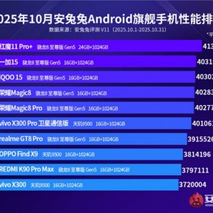 Edition), 오포 파인드 X9, 비보 X300은 각각 6위, 8위, 10위에 머물러, 최상위권