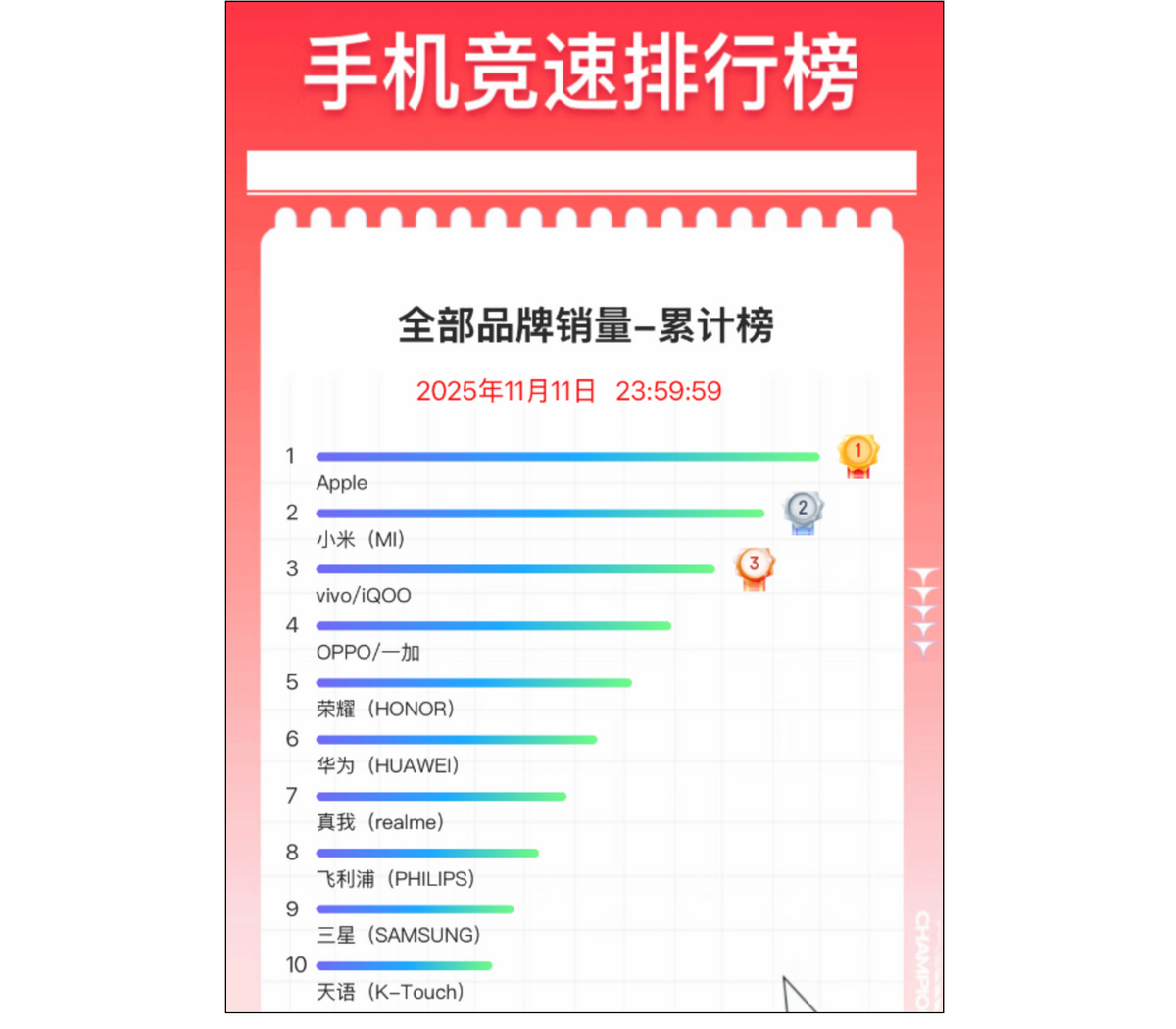 애플에 이어 샤오미가 중국 브랜드 중 최고 판매 브랜드를 유지했으며,