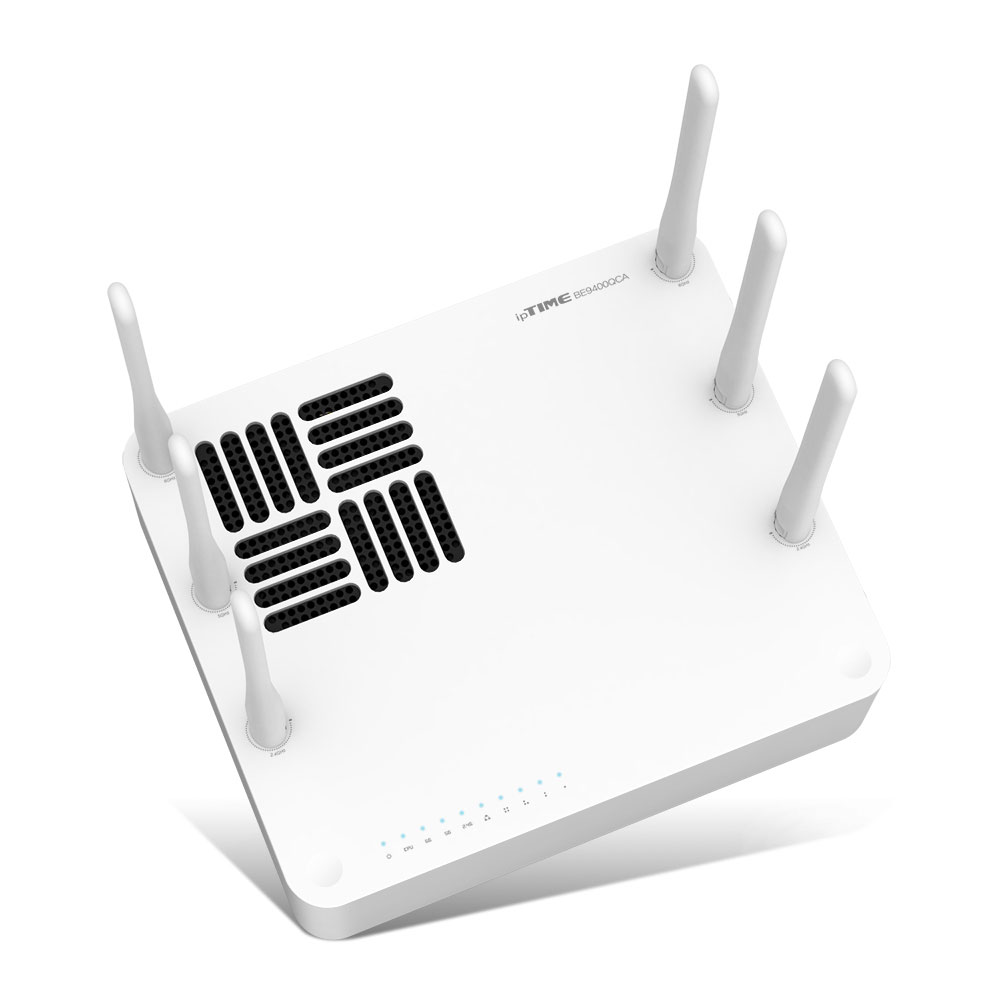 ipTIME BE9400QCA에 장착된 WAN 포트와 4개의 LAN 포트는 모두 2.5Gbps 속도를 지원해 초고속 유선 네트워크 환경을 구축할 수 있으며, USB 3.0 포트는 네트워크 서버, 프린터 서버, 스마트기기 충전 등 다양한 USB 기반 기능을 제공한다. 또한 BE9400QCA에는 열을 효과적으로 방출하기 위하여 제품 상단부에 새롭게 설계된 대형 통풍 구조를 적용한 디자인이 채택되었다.