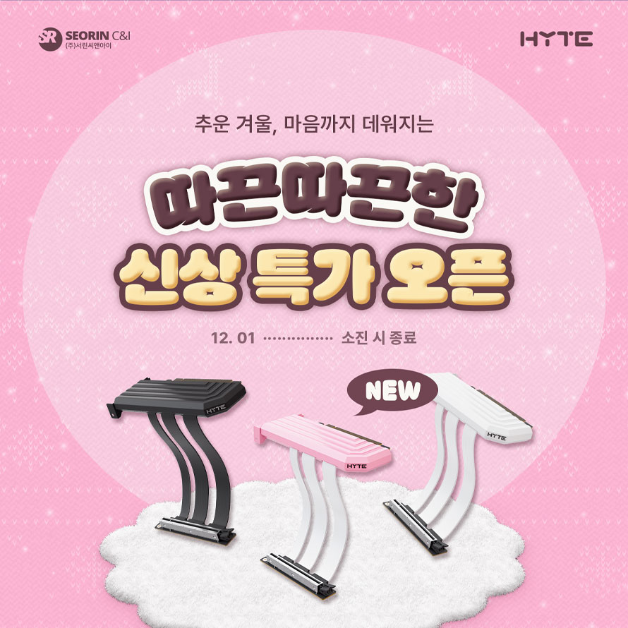 컴퓨터 관련 주요 부품 수입 유통 전문 업체 서린씨앤아이(대표: 전덕규)가 HYTE의 신형 라이저 케이블 HYTE PCIe 5.0 Hyper Riser 출시를 기념해 한정 수량 신상 특가 프로모션을 진행한다고 밝혔다. 행사는 2025년 12월 1일부터 시작되며 준비된 수량 소진 시 종료된다.