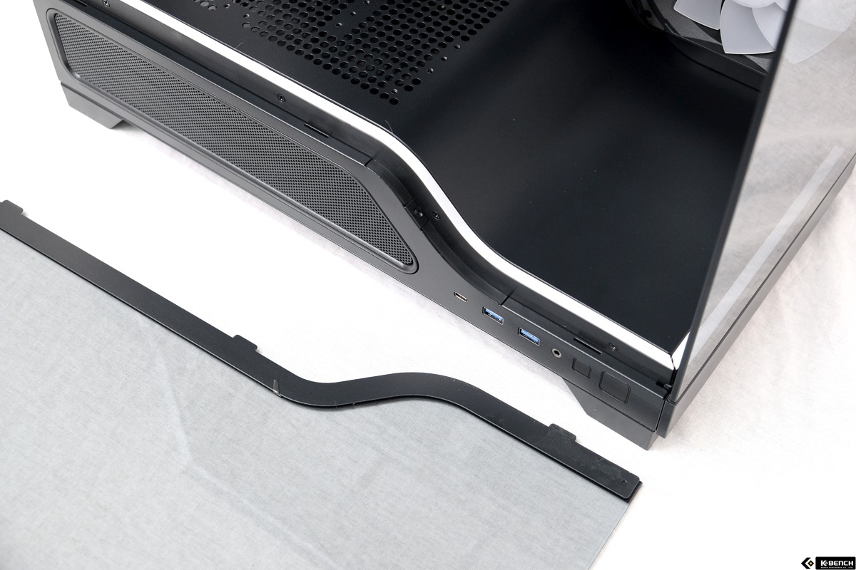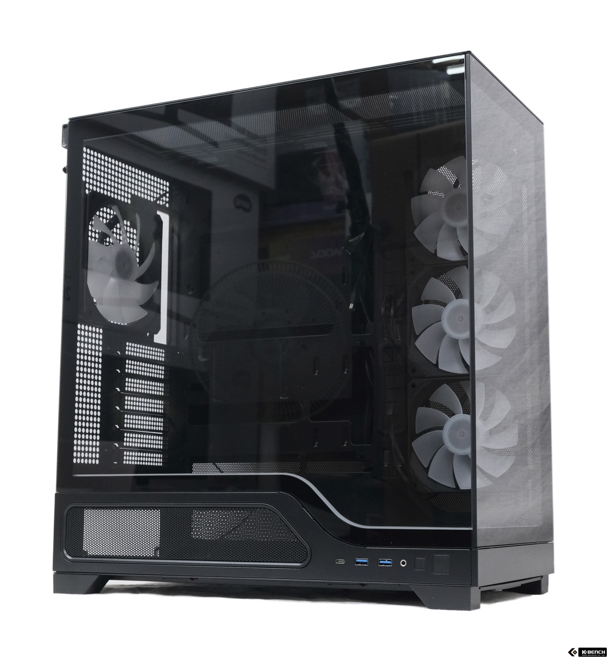 구조라는 어항형 특성에도 불구하고, 사선으로 떨어지는 슬로프 디자인과 L자형 메쉬 패널을 조합해 흡기 효율을 높였고, 측면 120mm 흡기 팬