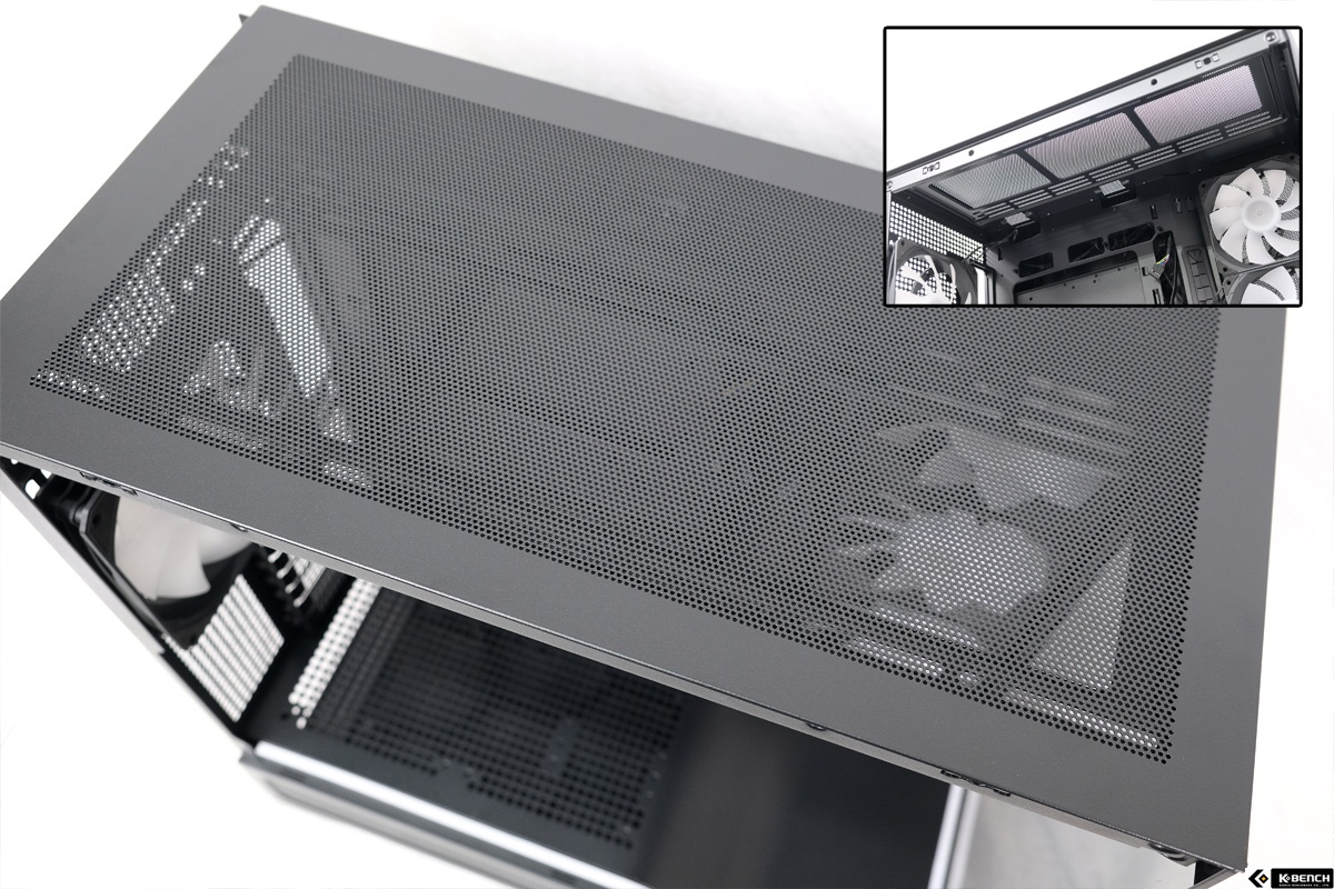 간섭 없이 AIO 수냉 쿨러를 상단에 장착할 수 있다. 일부 케이스는 상단에 라디에이터 장착 시 공간이 부족해지는 경우도 있지만 실측 기준으로