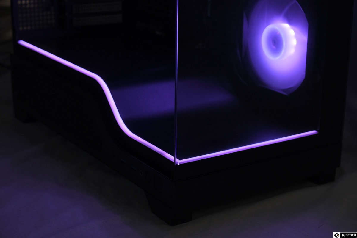 퍼지는 것이 특징이다. 특히 측면에 일렬로 배치된 120mm aRGB 팬 3개는 냉각 요소와 시각적 요소를 동시에 담당하며, 투명 패널을 통해