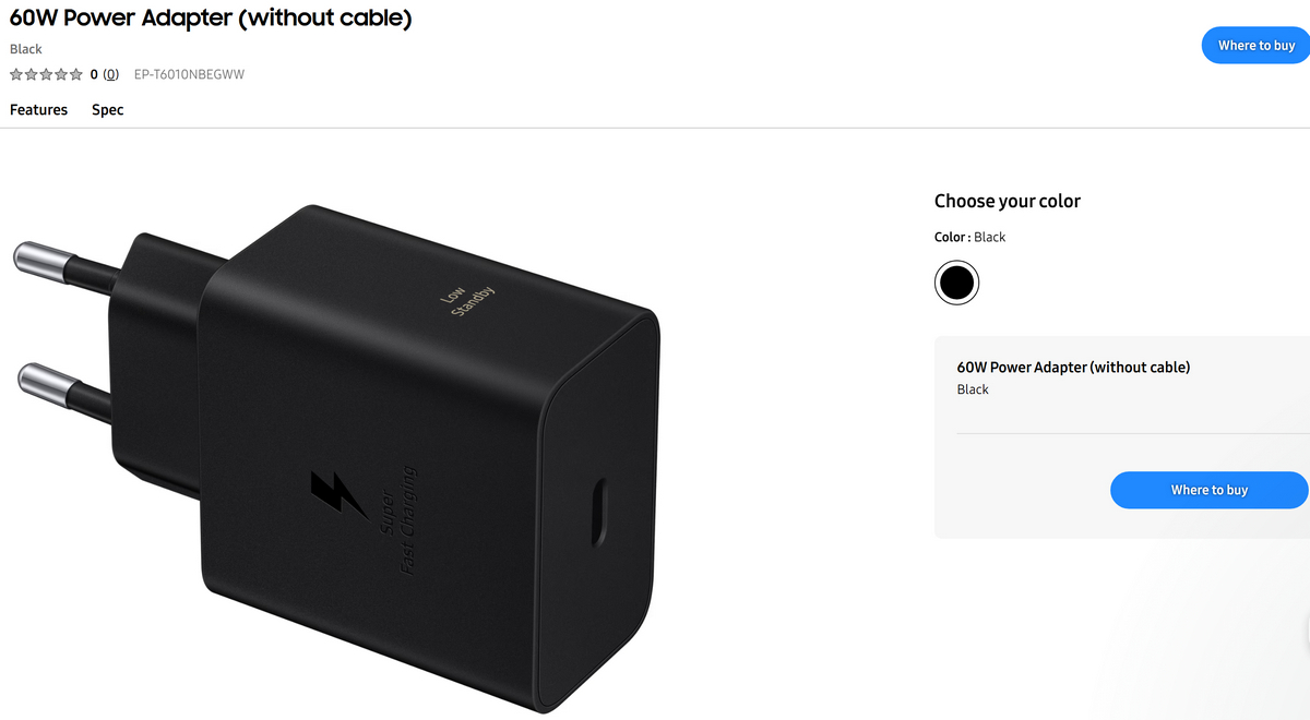 충전 속도 업그레이드를 암시하는 새로운 60W 파워 어댑터(모델명 EP-T6010)가 삼성