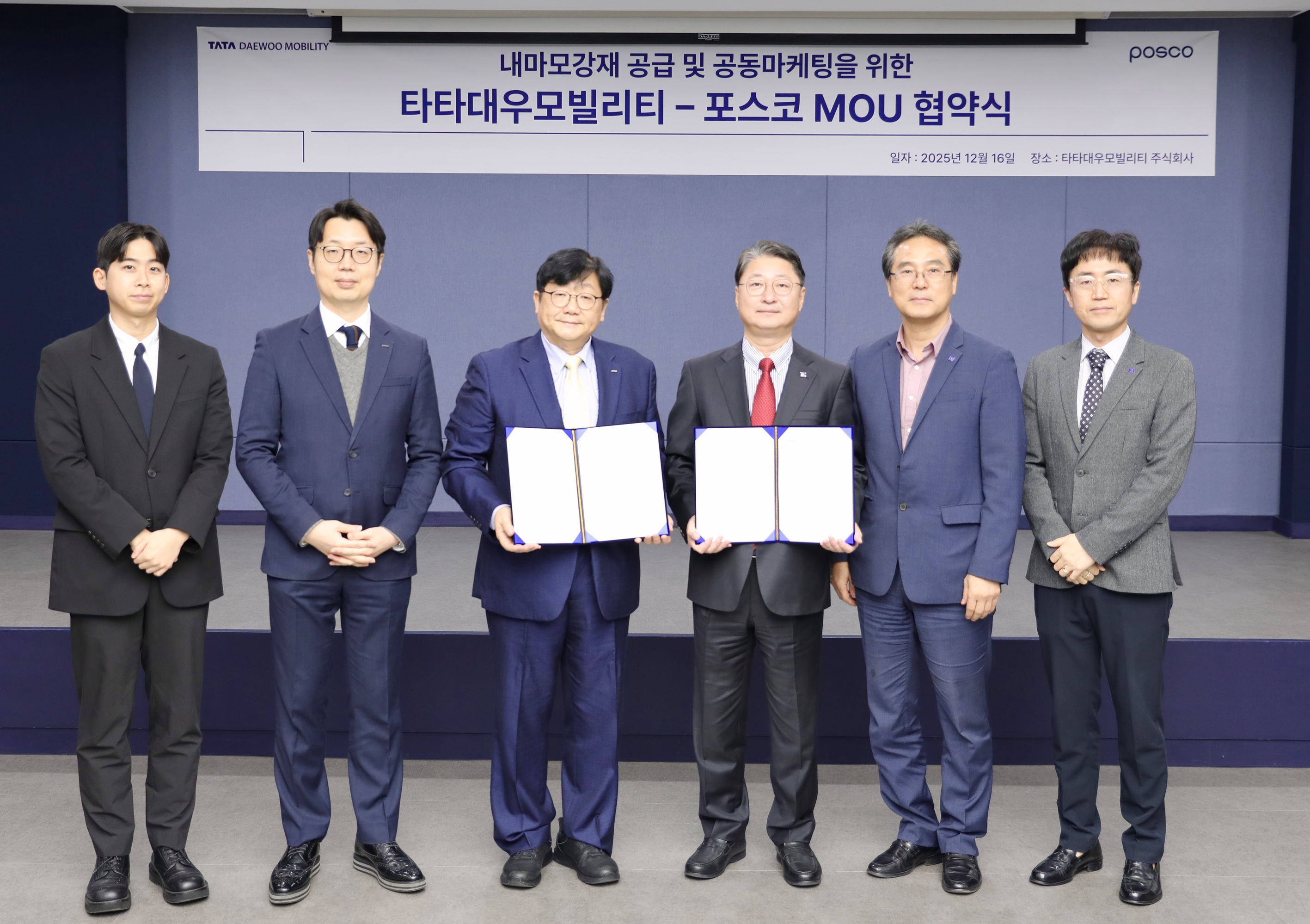 이번 MOU 체결식은 16일 전라북도 군산에 위치한 타타대우모빌리티 본사에서 진행됐으며, 양사 주요 관계자들이 참석해 협약 취지와 향후 협력 방향을 공유했다. 체결식에서는 상용차 시장 환경 변화와 고부가 소재 적용 확대 필요성에 대한 공감대를 바탕으로 협력이 논의됐으며, 내마모강 적용 확대를 통한 제품 차별화와 공동 마케팅 등 실질적인 사업 연계 방안에 대해서도 의견을 나눴다.