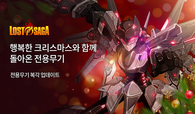 글로벌 게임 퍼블리싱 플랫폼 기업 밸로프(331520, 대표 신재명)가 서비스하는 대전 액션 온라인 게임 ‘로스트사가’가 크리스마스를 맞아 대규모 업데이트와 다양한 이벤트를 전개한다고 17일 밝혔다.
