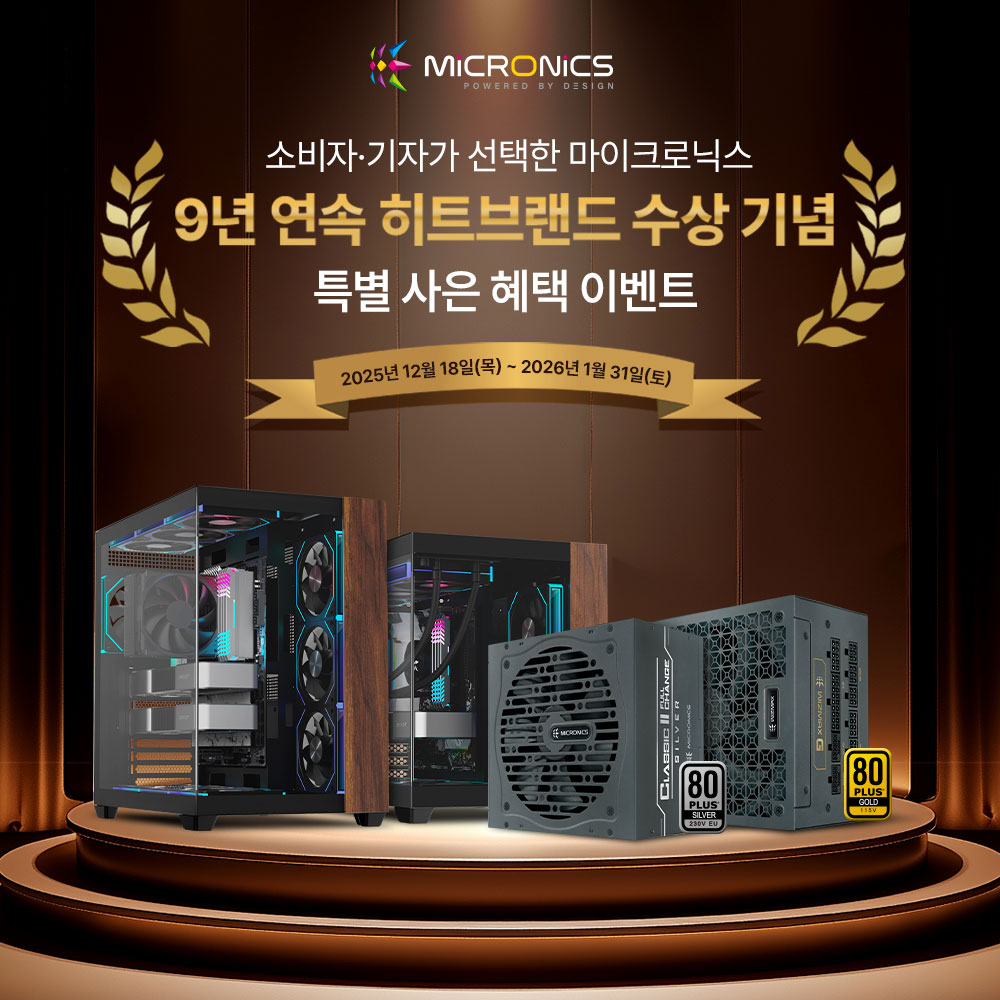 특히 2025년 히트브랜드 및 어워드 선정 과정에서는 마이크로닉스의 주요 제품들이 부문별로 성과를 거뒀다. 다나와 히트브랜드에는 ‘클래식 II 실버 ATX 3.1’ 시리즈가 선정되며 합리적인 가격대와 최신 규격을 반영한 파워서플라이 경쟁력을 인정받았다.