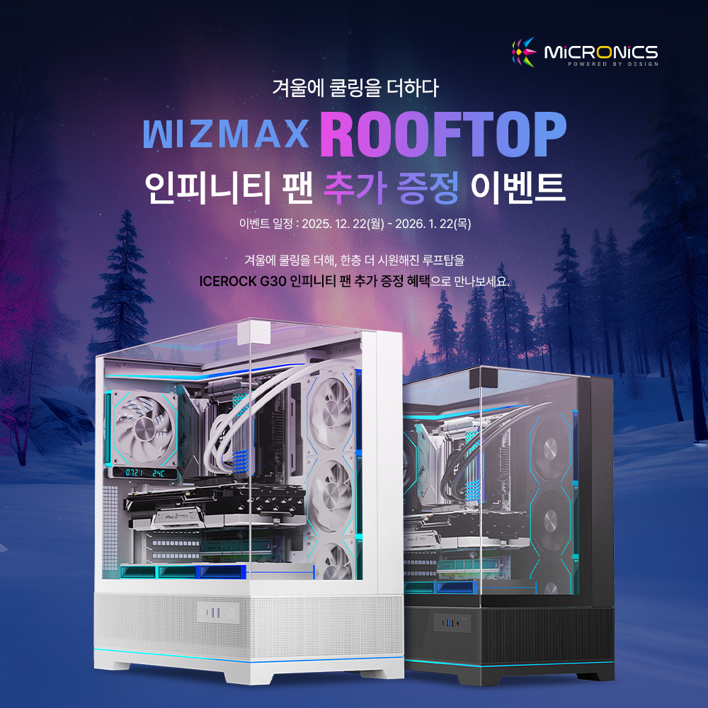 게이밍 기기 디자인•개발•제조 전문기업 한미마이크로닉스(대표 강현민, 이하 마이크로닉스)가 프리미엄 PC 케이스 WIZMAX 루프탑 시리즈 구매 고객을 대상으로 인피니티 팬 증정 이벤트를 진행한다.