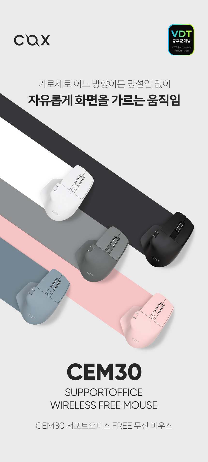 삶의 새로운 패러다임, “뉴 라이프 플랫폼”을 만들어가는 주식회사 앱코(대표이사 : 오광근)의 게이밍 기어 브랜드 콕스(COX)가 ‘CEM30 서포트오피스 FREE 무선 마우스(이하 CEM30)’의 출시 소식을 전했다.
