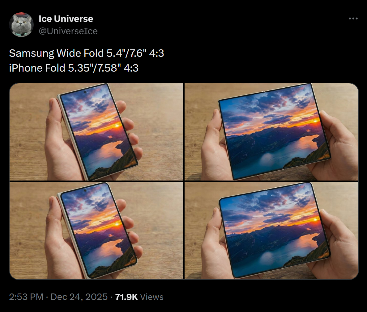 외부·4:3 비율)와 매우 흡사한 폼팩터로, 공개된 목업에서도 각진 모서리