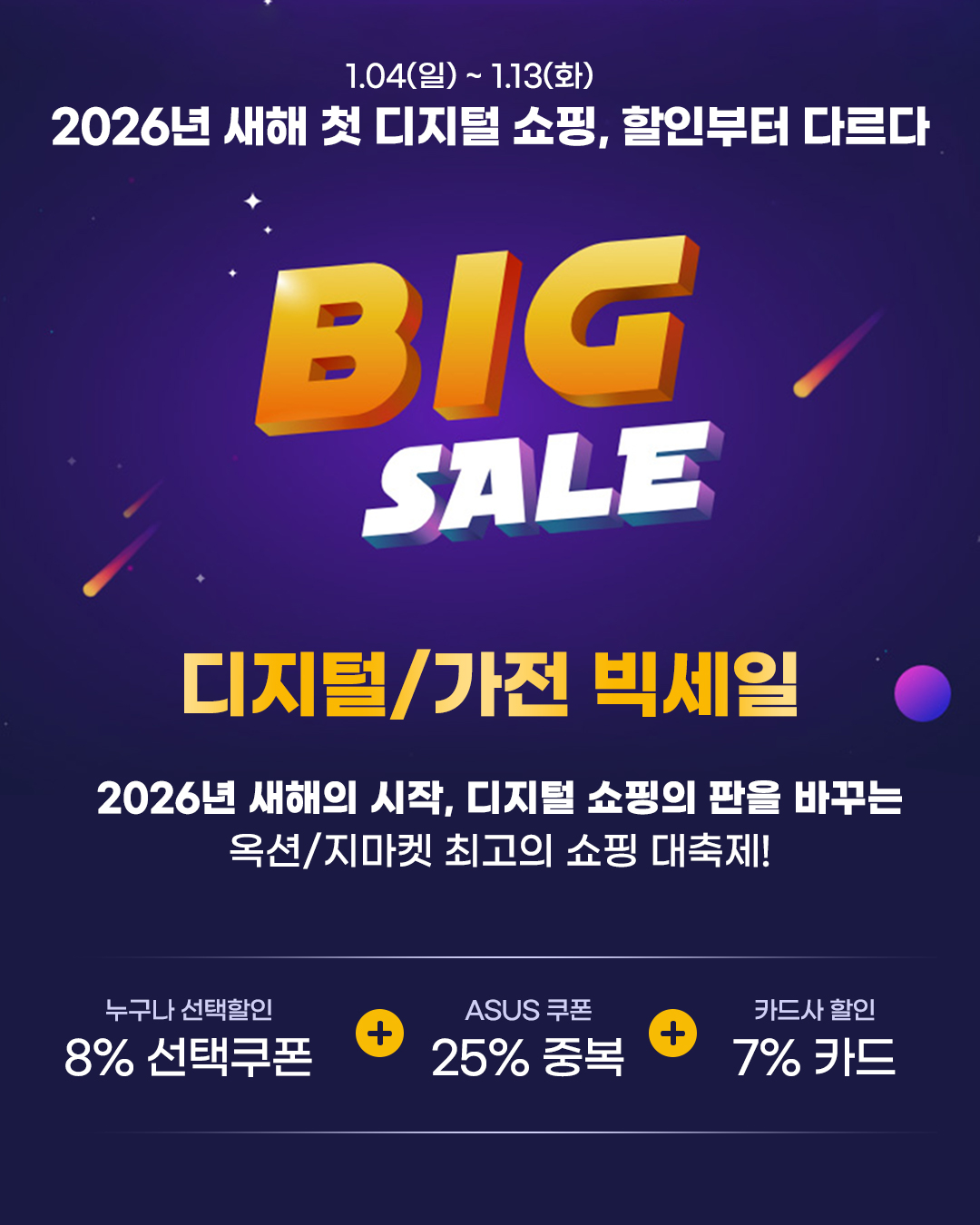 에이서 공식 유통 채널 ㈜아이티블루(대표이사:전병권)는 국내 대표 이커머스 플랫폼인 옥션, 지마켓에서 “병오년(丙午年) 2026년”을 맞아 대규모 온라인 쇼핑 행사인 “디지털 빅세일” 프로모션을 진행한다고 밝혔다. 이번 행사는 1월 04일(일)부터 1월 13일(화)까지 10일간 진행될 예정이며, 8% 선택쿠폰(최대 MAX)과 브랜드 중복쿠폰 46만,(최대 46만원) 카드할인 7%(최대 15만원)이 적용된다. 새해를 맞아 시작되는 이번 2026년 G마켓 디지털 빅세일은 크리에이터, 업무, 학습, 여가 등 일상 전반에서 활용도가 높은 노트북을 보다 합리적인 조건으로 구매할 수 있는 기회로 주목받고 있다.