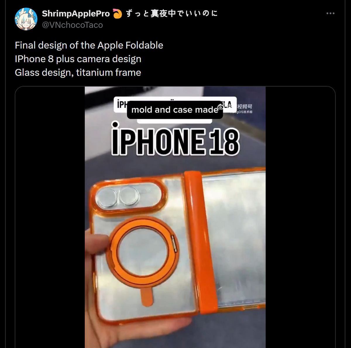 팁스터는 영상 속 디자인이 아이폰 폴드의 최종 외형이라고 주장한다.