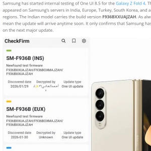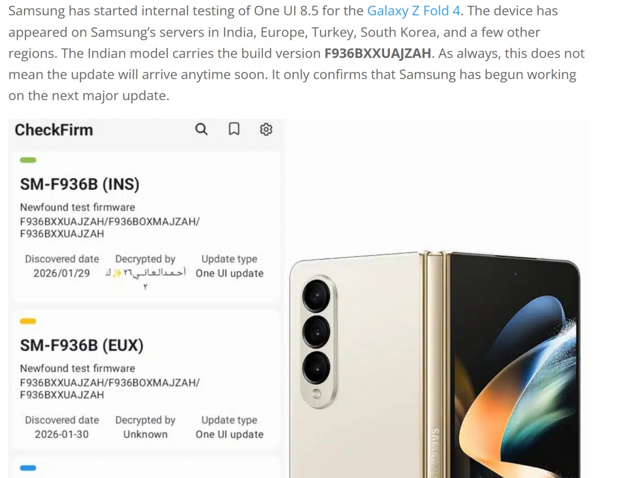 지역의 삼성 서버에서 갤럭시 Z 폴드 4와 갤럭시 Z 플립 4용 One UI 8.5 내부 테스트