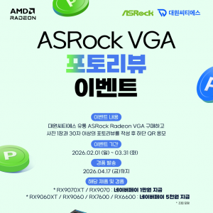 대원씨티에스 남혁민 본부장은 “ASRock 라데온 그래픽카드를 선택해주신 고객분들에게 감사의 마음을 전하고자 이번 리뷰 이벤트를 준비했다”며, “강력한 퍼포먼스를 자랑하는 최신 RX 9000 시리즈를 비롯해 다양한 라인업을 대상으로 진행하는 만큼, 많은 게이머분들이 참여해 혜택을 누리시길 바란다”고 전했다.