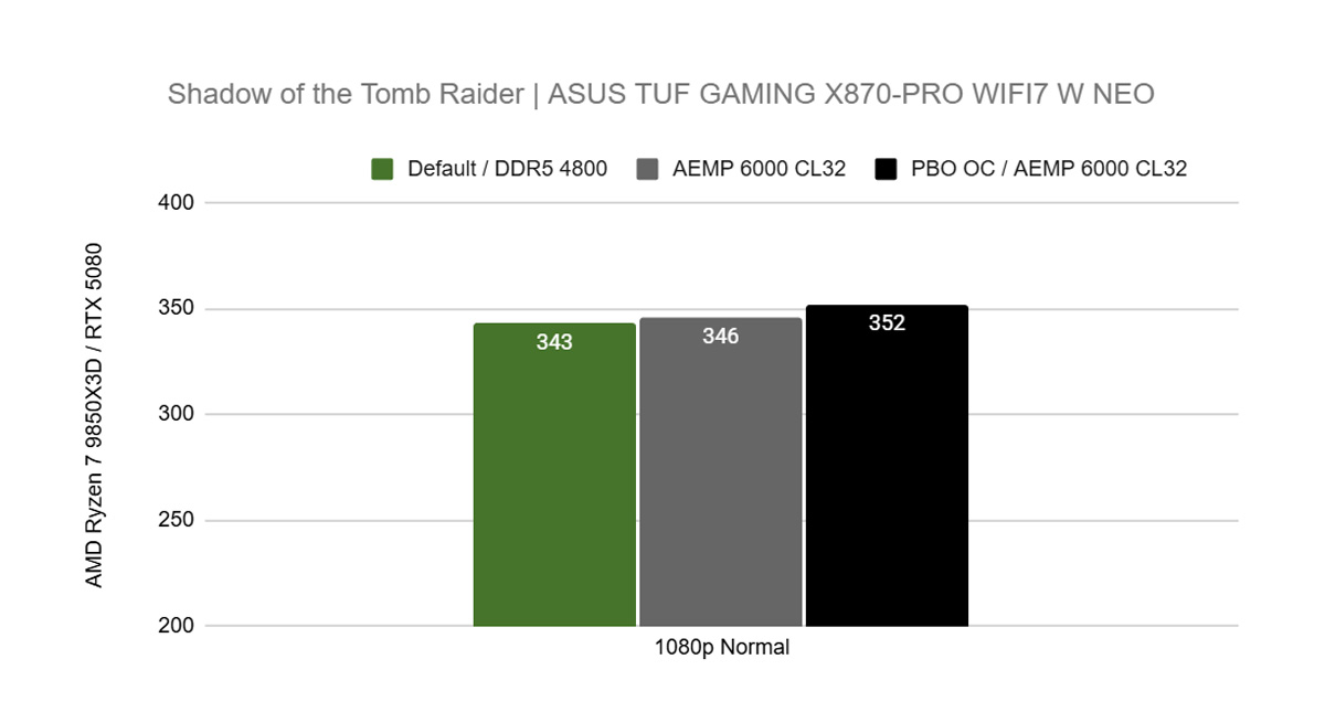 CPU와 메모리 오버클럭을 함께 적용한 이후 성능 변화도 확인됐다. 툼레이더: 쉐도우 오브 더 툼레이더 기준 평균 프레임은 기본 상태