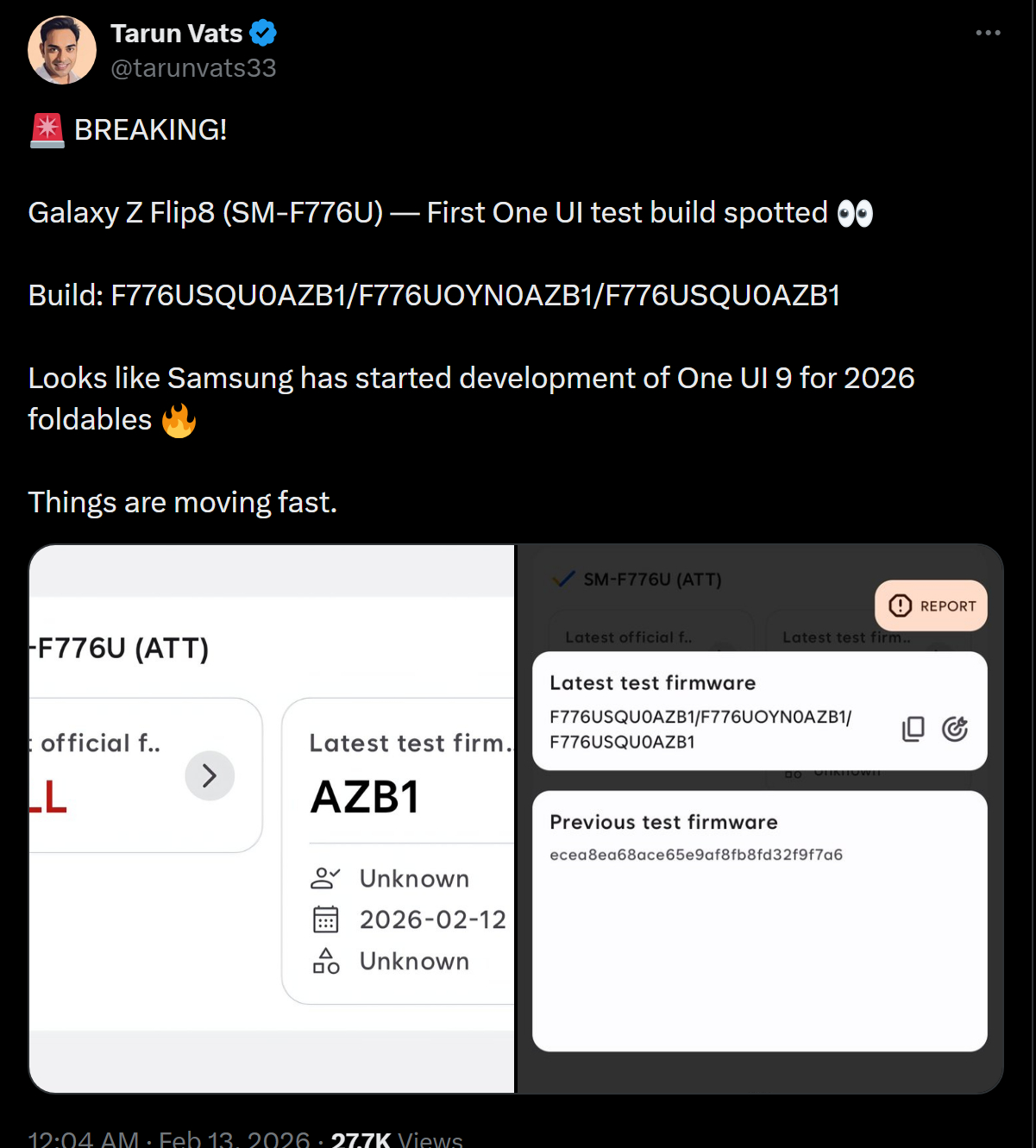 F776USQU0AZB1, F976USQU0AZB1 펌웨어 빌드가 새롭게 발견됐다. 해당 빌드는 각각