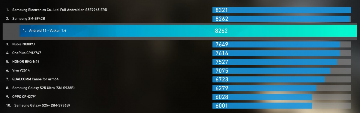 제외하면, 현 시점에서 확인된 기기 중 갤럭시 S26의 그래픽 성능이 가장 높은 수준이라는