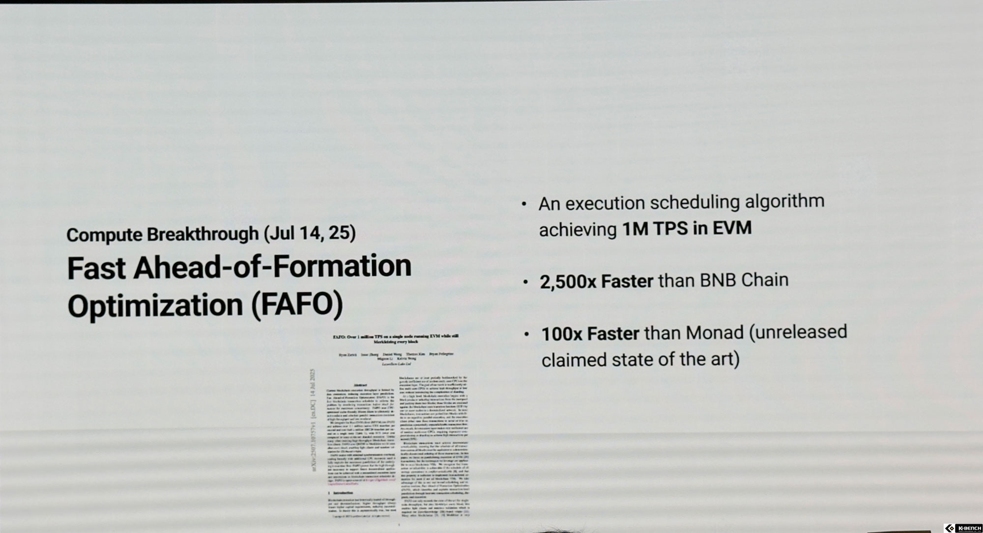 먼저 연산 분야의 'FAFO(Fast Ahead-of-Formation Optimization)'는 트랜잭션을 병렬로 처리하는 스케줄링
