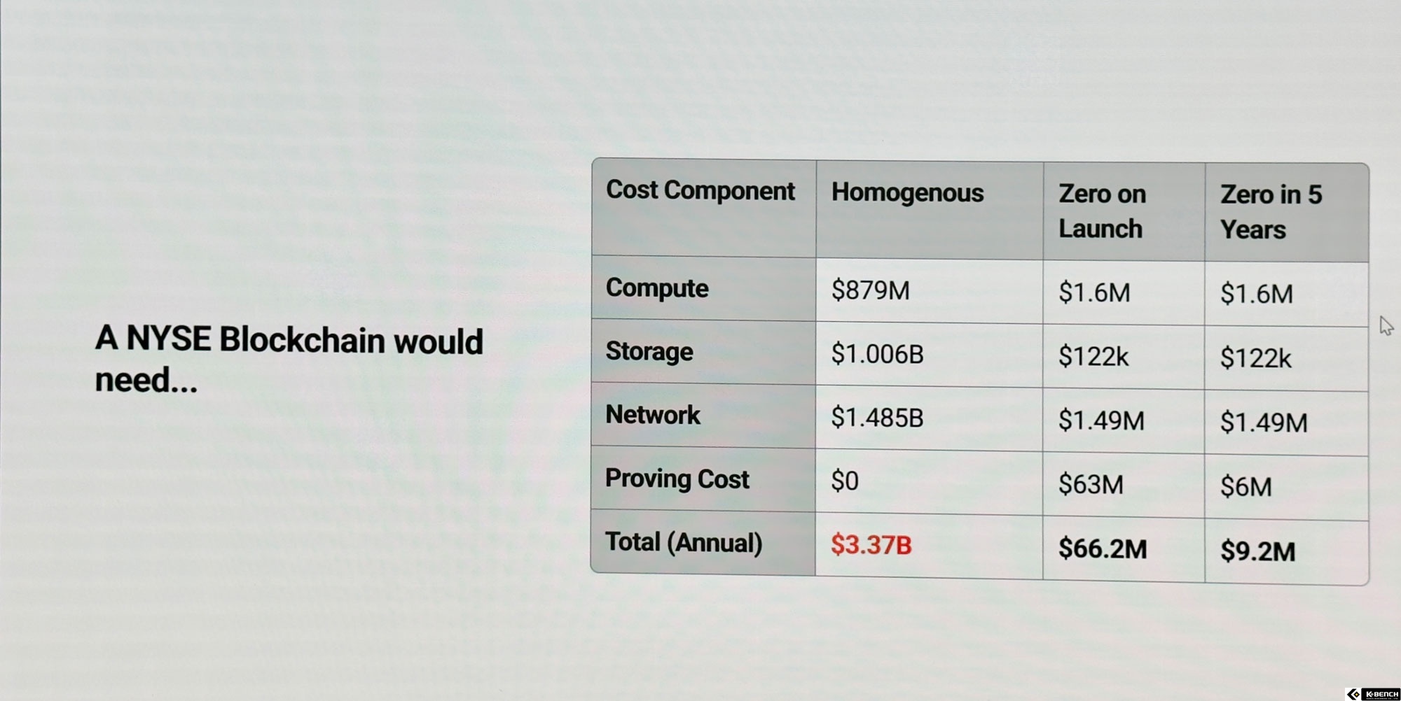임 총괄은 “뉴욕증권거래소(NYSE) 수준의 초당 200만 건 거래량을 온체인으로 구현할 경우, 기존 블록체인으로는 연간 약 5조 원의