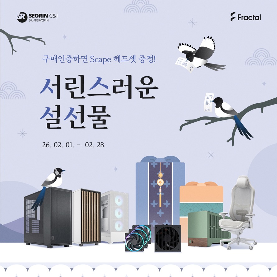 컴퓨터 관련 주요 부품 수입 유통 전문 업체 서린씨앤아이(대표: 전덕규)가 프랙탈디자인(Fractal Design) 제품 구매 고객을 대상으로 하는 구매 인증 이벤트 서린스러운 설선물 프로모션을 진행한다.