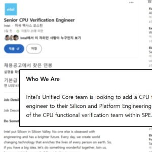 인텔이 ‘통합 코어(Unified Core)’ 관련 엔지니어 채용 공고를 낸 것으로 확인됐다.
