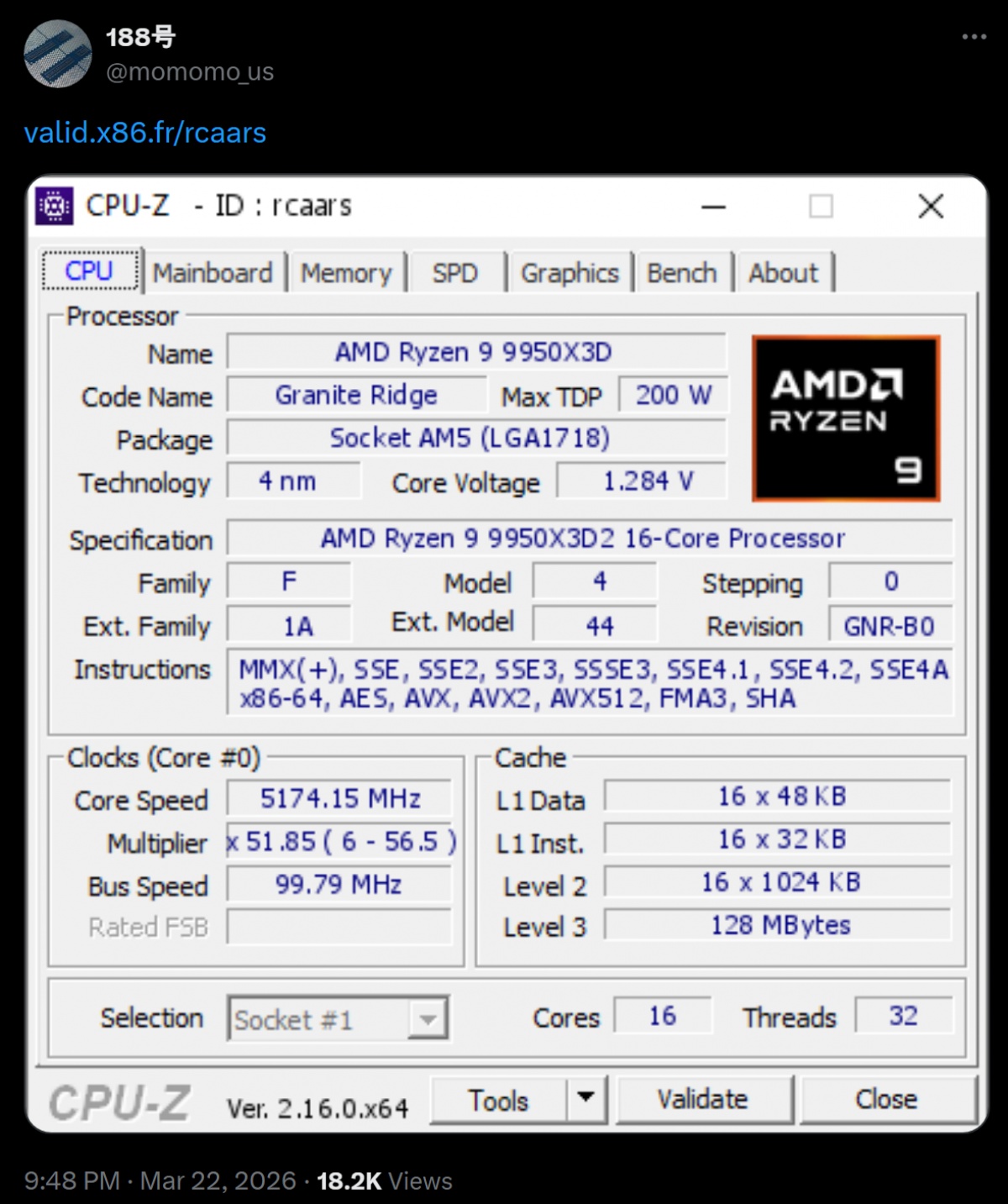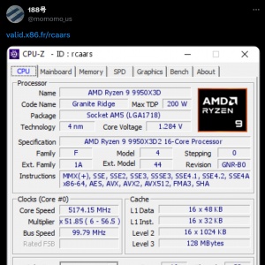 9 9950X3D2’ 벤치마크 정보가 CPU-Z 데이터베이스에서 포착됐다.