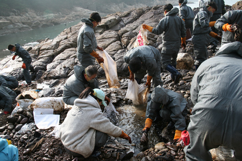태안 기름유출 피해 현장을 찾아 봉사활동을 펼쳤다.