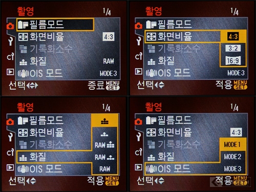 촬영 관련 설정을 먼저 살펴보자. DMC-L10은 필름 모드란 것을