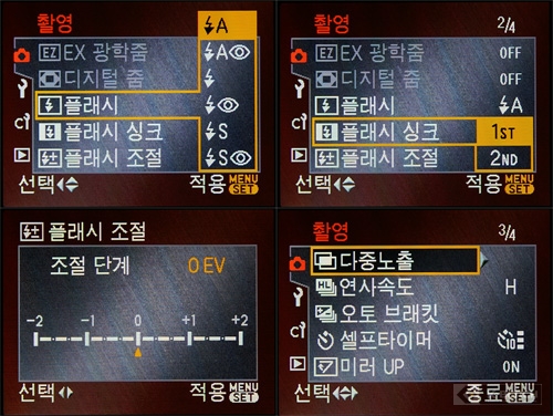DMC-L10은 다양한 플래시 모드를 지원한다. 자동, 수동, 적목감소