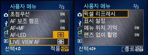 라이브뷰를 위해서는 Contrast AF를 사용할 수 있는 렌즈를 필수로 사용 하여야 한다.