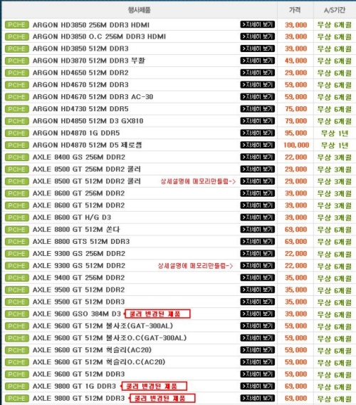 8400GS부터 라데온 HD4870에 이르기까지 판매되는 그래픽카드의 종류도 다양하고