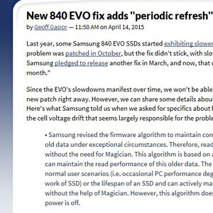 840 EVO SSD에서 발견된 성능 문제를 해결할 신규 펌웨어가 이달 말 공개될 예정 였지만 문제의 해법에 대해 논란이 일고 있다.