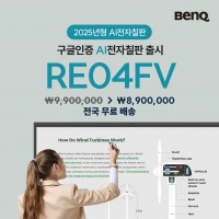 벤큐, AI 전자칠판 RE9804FV 100만원 할인 프로모션 실시 글로벌 디스플레이 전문 브랜드 벤큐(지사장 소윤석)는 AI 기능을 탑재한 대형 전자칠판 RE9804FV의 한정 기간 할인 프로모션을 진행한다고 밝혔다.이번 행사는 RE9804FV를 정가 990만원에서 890만원으로 할인된 가격에 구매할 수 있으며, 전국 무료 배송 서비스가 함께 제공된다. RE9804FV는 벤큐가 새롭게 선보인 AI 전자칠... 2025/11/10 16:08:10 디스플레이 #벤큐 |