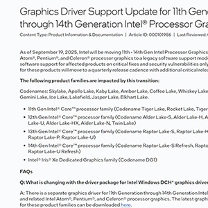 인텔이 11세대부터 14세대 코어 프로세서의 내장 그래픽 드라이버를 기존 체계에서