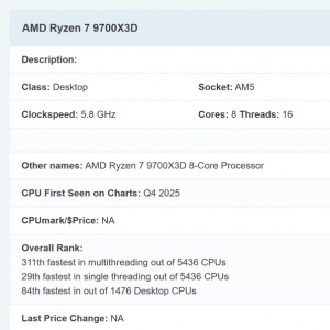 아직 공식 발표되지 않은 AMD 라이젠(Ryzen) 7 9700X3D의