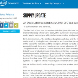 이 소식은 현지 시간 28일, 공개된 인텔 CEO겸 CFO인 밥 스완(Bob Swan)의 공개