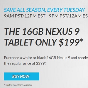 넥서스9를 40% 할인된 가격에 판매하고 있다.