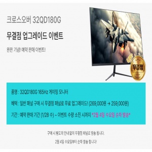 32인치 QHD 165Hz 크로스오버존 게이밍 모니터 완판기념 예약판매 디스플레이 전문기업 ㈜크로스오버존(대표 이영수, www.crosslcd.co.kr)이 32형 QHD 165Hz를 지원하는 전문가 모니터 ‘크로스오버 32QD180G IPS WQHD 게이밍 AI’를 대상으로 예약판매 이벤트를 진행한다.이번 이벤트는 32QD180G의 완판을 기념하기 위해 준비됐다. 다양한 마켓들을 대상으로 1 28(수 ~... 2026/01/29 09:48:54 디스플레이 #크로스오버, #모니터 |