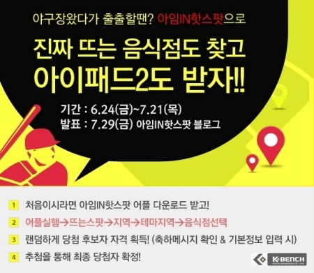 ‘뜨는 음식점’을 찾은 야구 마니아들에게 아이패드2 등 풍성한 경품을 증정하는