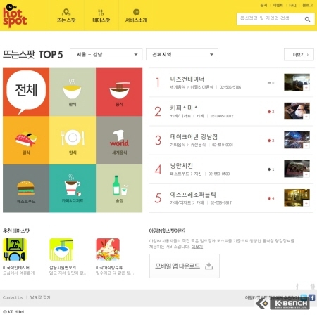 모바일 컴퍼니 KTH(대표 서정수)는 자사의 ‘뜨는 음식점’ 정보 제공 애플리케이션(이하
