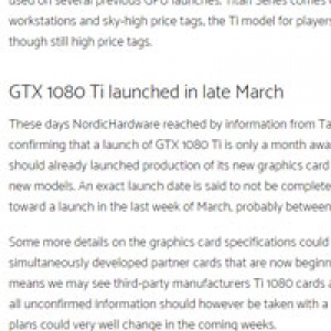 엔비디아 지포스 GTX 1080 Ti, 다음 달 20~23일 출격(?) "