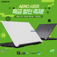 AMD 슬림 게이밍 노트북, 기가바이트 AERO X16 지마켓 특가 프로모션 참여 기가바이트(GIGABYTE)의 국내 공식 수입 유통사 블루존(BLUEZONE)은 AMD 기반의 슬림 게이밍 노트북 AERO X16 시리즈(1VH/1WH/2WH)를 대상으로 7월 14일부터 7월 20일까지 G마켓에서 특별 할인 프로모션을 진행한다고 밝혔다. 이번 행사에서는 시리즈 중에서도 AERO X16 1VH 모델에 가장 높은 할인율이 적... |