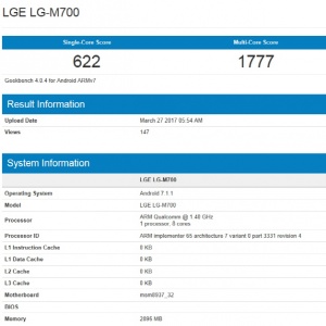 긱벤치 사이트에서 테스트된 'LG Q6' 모델명은 'LG-M700'이다.