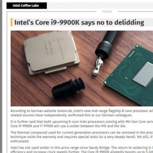 인텔 8코어 i9-9900K는 뚜따 불가? 솔더링 가능성 제기