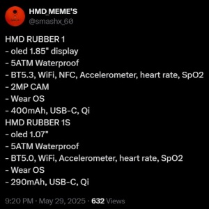 팁스터 @smashx_60 보고서에 따르면 HMD는 ▲RUBBER 1 ▲RUBBER