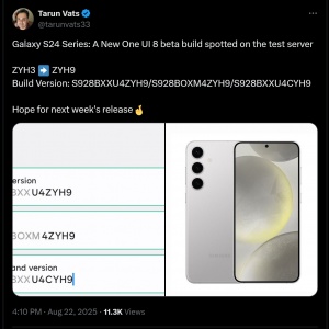새로운 베타 펌웨어(버전 S928BXXU4ZYH9)가 포착됐다고 전했다. 해당 빌드는 갤럭시